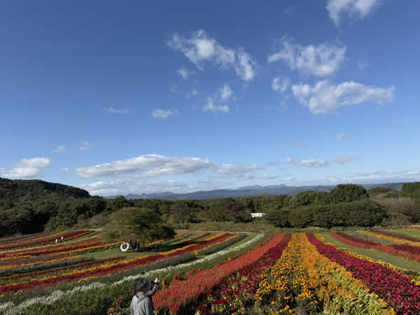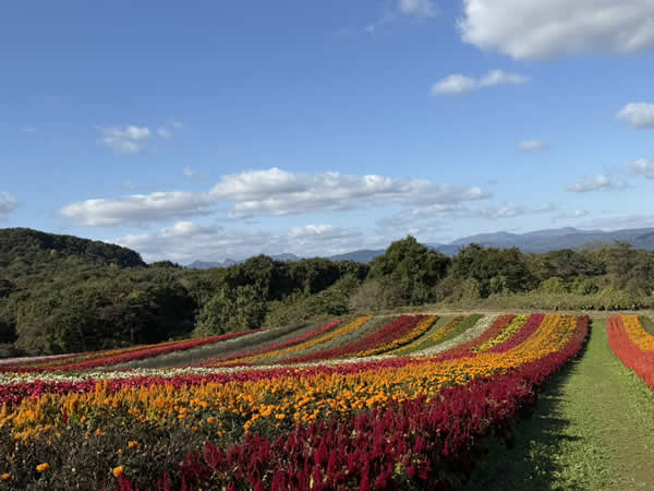春は菜の花やビオラ、夏はひまわり、秋はサルビアやコスモスが丘一面を彩り、冬にはライトアップイベント「星あかり」が開催されます。
